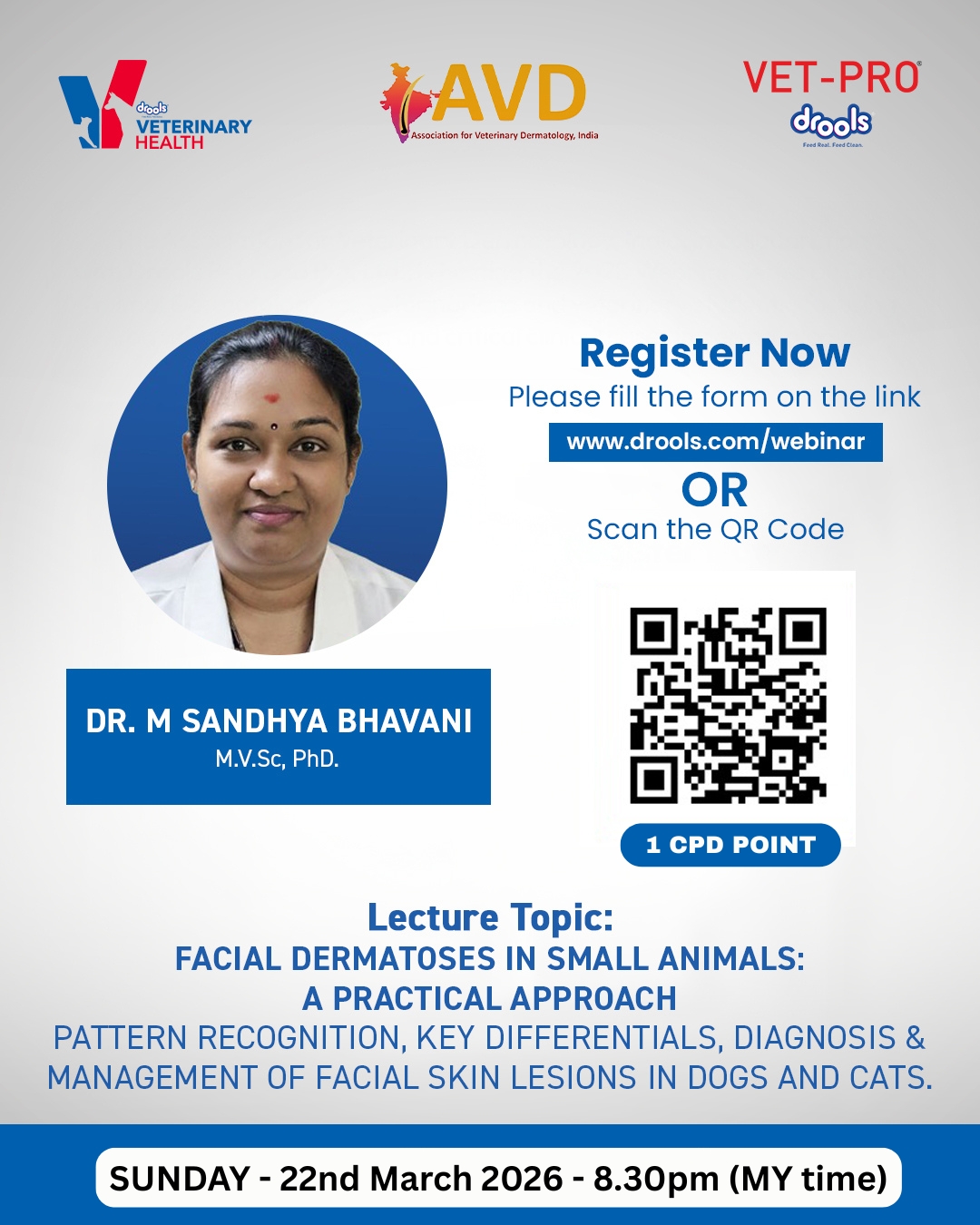 Join Dr. M. Sandhya Bhavani, M.V.Sc, PhD on Sunday, 22nd March 2026 | 8.30 PM for a clinically focused session in association with AVD.